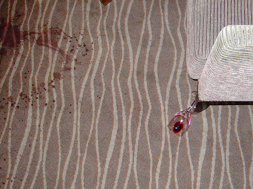 If you know the dyes are fast and want to treat the spill yourself, please follow the appropriate procedures below remembering that it is better to leave a slight stain than it is to bleach or bleed the rugs colour or damage the fibre. Most food dye based stains like wine, soft drink, tomato sauce etc will fade naturally over time as the dyes are not UV stable.